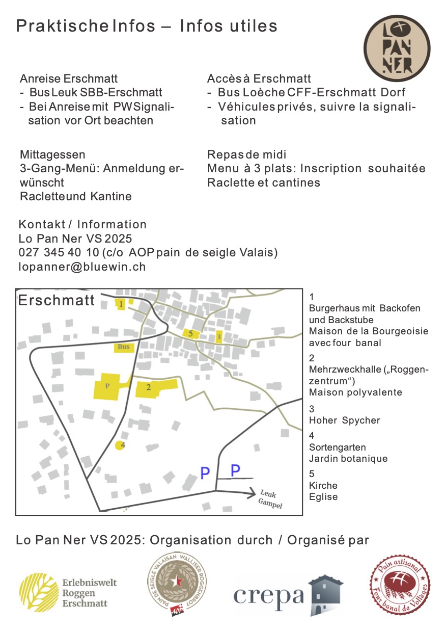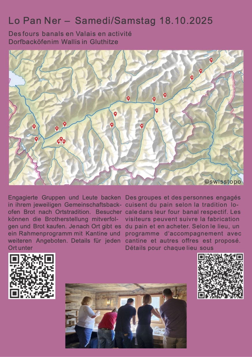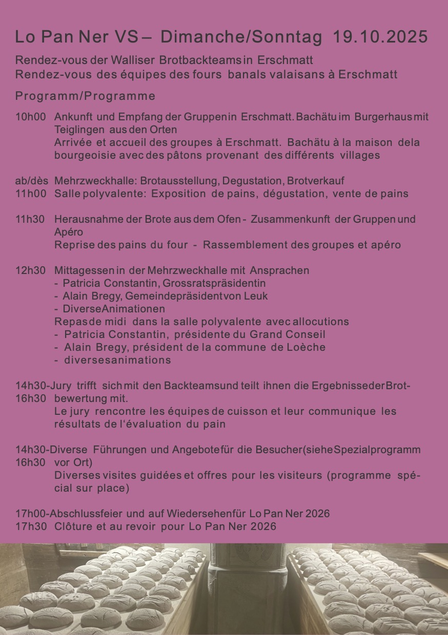 Im Jahr 2025 schliesst sich das Wallis zum ersten Mal den bereits aktiven Alpenregionen an, um diese Tradition am 18. und 19. Oktober gemeinsam zu feiern. Dies ist der Zusammenarbeit zwischen dem Regionalen Zentrum für Alpenforschung, dem Verein Erlebniswelt Roggen Erschmatt, dem Verein für Walliser Roggenbrot AOP und dem Gemeinschaftsbackofen von Vollèges zu verdanken.