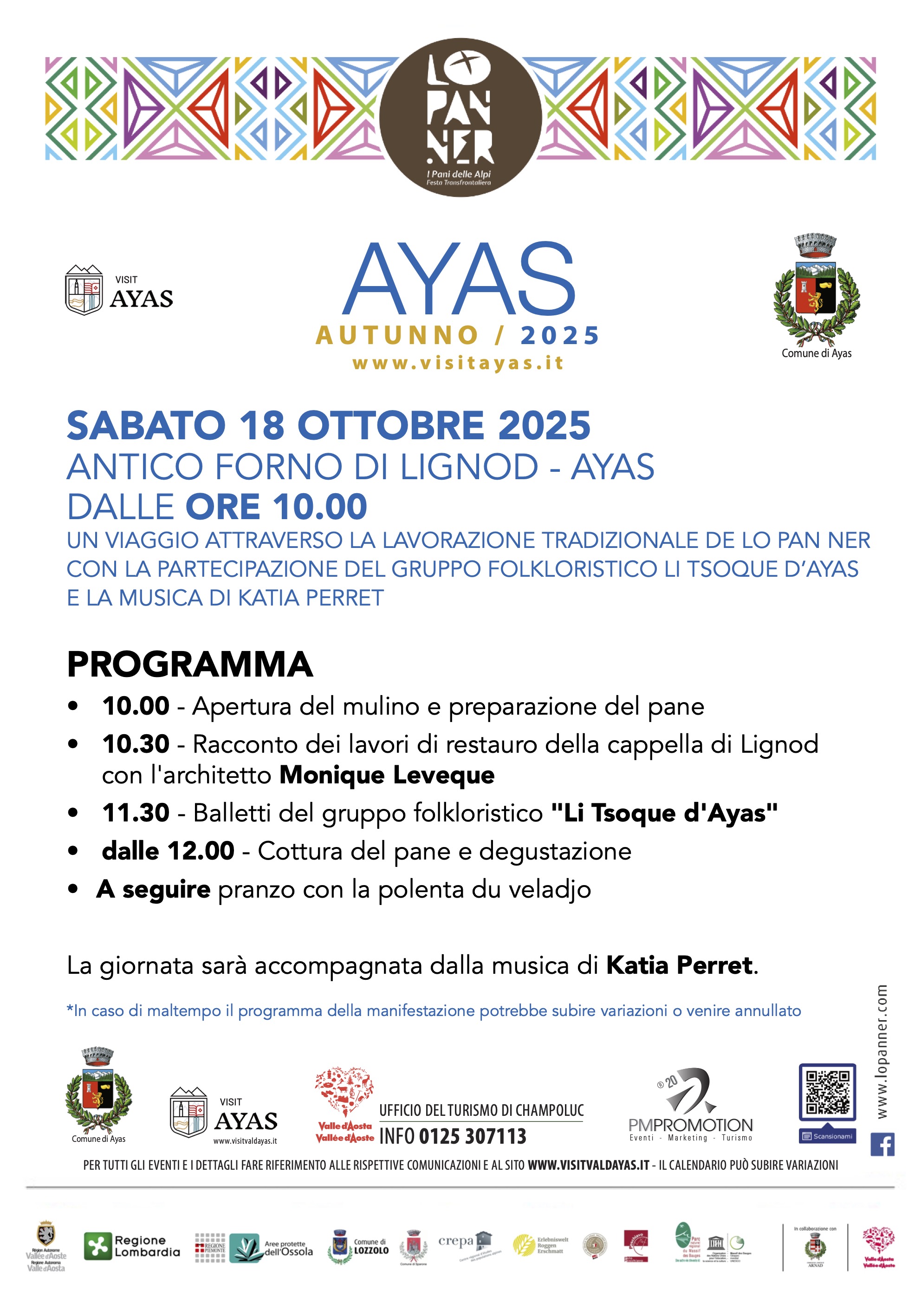 Il Catasto d’impianto dello Stato italiano segnala sul territorio di Ayas almeno 33 forni a pane alla fine del 1800. Nel corso dell’inventario organizzato dalla Sovrintendenza alle attività e beni culturali nel 1996-1997 ne sono stati riscontrati 23. Pochi sono datati, e precisamente quello di Cunéaz (fine XVIII secolo), quello di Magnéaz (160 pani) datato 1859 e quello di Champoluc, datato 1861.