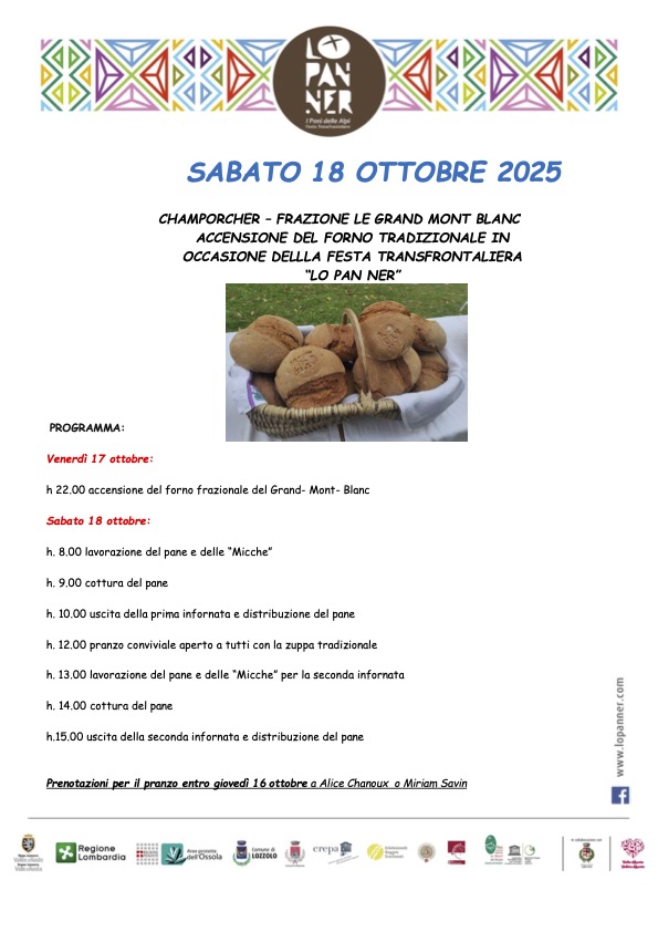 La più antica attestazione dell’esistenza del pane nero di segale a Champorcher si trova in una pergamena del XV secolo in cui Jacquemin Curt, per assicurare la salvezza della sua anima e di quella di sua moglie Bartolomée dopo la loro morte, fece una generosa donazione a tutta la comunità e al parroco di Champorcher, Barthélemy Bonin, consistente in una “mica”, un pane di segala e due libbre di formaggio, un quarteron di vino, tre soldi e una candela che avrebbero dovuto essere corrisposti ogni anno il lunedì delle rogazioni, da prelevare da un’elemosina più grande, consistente in un sestario (circa 50 litri) di buona segala, in pane cotto (unum sestarium siliginis pulchre et receptibilis in pane cocto), mezzo centino (19 kg) di formaggio (dimidium centini casei) e tre emine (67 litri circa) di vino, “buono e accettabile” (pulchrum et receptibilem), da distribuire a quanti avessero seguito la processione alla Lex du Planet, luogo in cui da secoli esisteva una cappella.